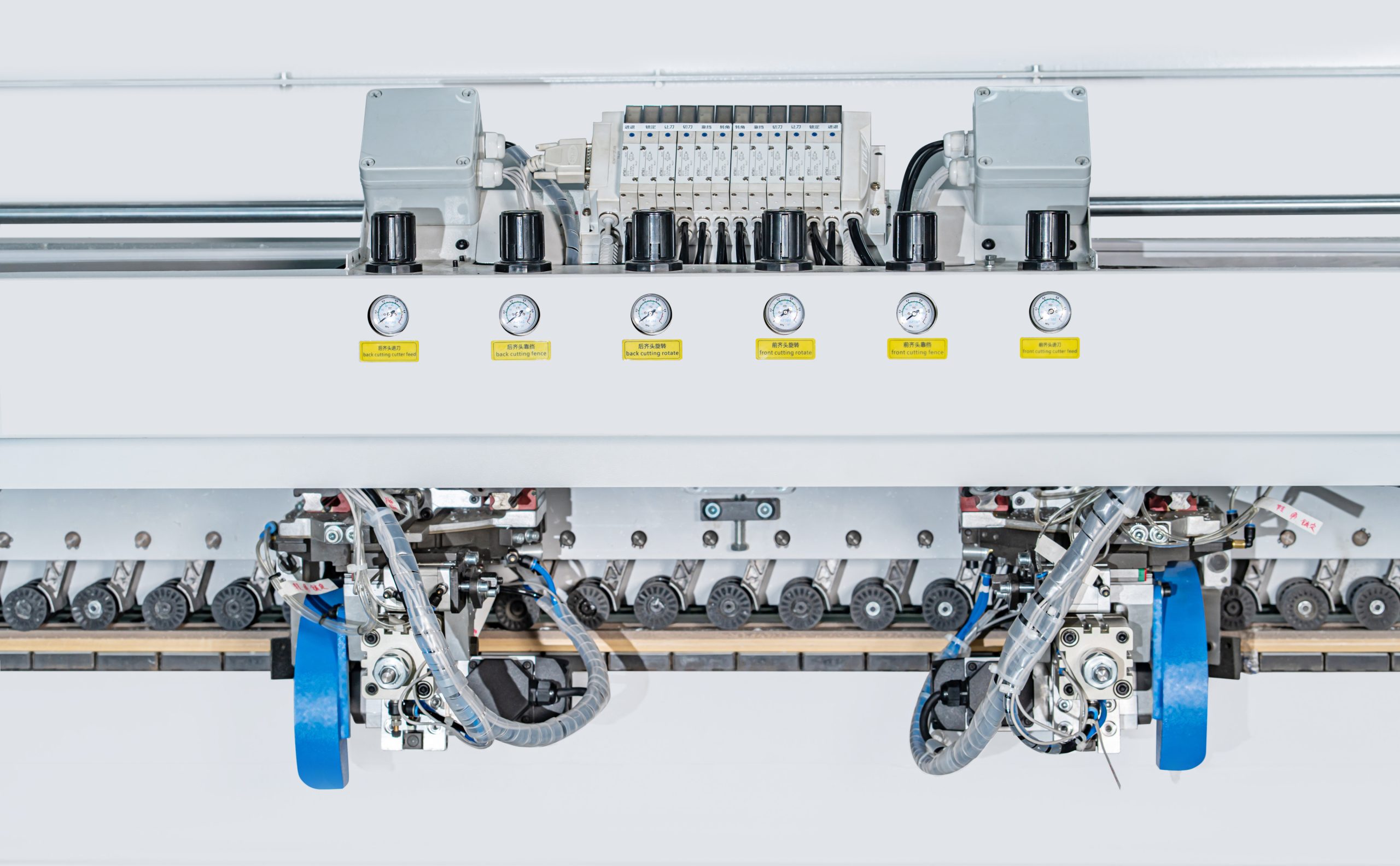 High efficiency: the horizontal cutting device can achieve double-end synchronous linear adjustment and symmetrical drive adjustment, compared with the traditional cutting device, it does not need to wait for the plate to be completely passed before it can be restored to the origin, so it can achieve more work continuity, greatly improving work efficiency.