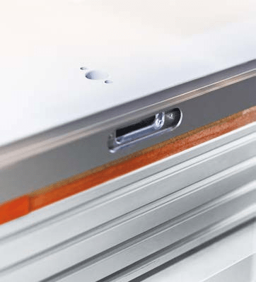 Outside the hinge side pressing device, a key type shield is used to prevent the splash of aluminum chips