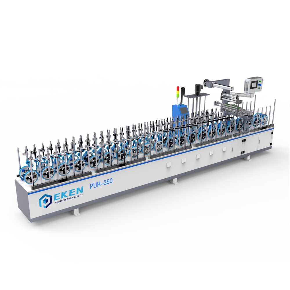 This machine is used for wrapping the veneer, PVC,CPL,PE,paper,etc materials on plastic profile and other skirting boards, door frame,jamb,L-architrave, and railings of stairs. The wrapping of surface, sides and bottom are accomplished in a single process.